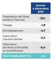 Figure 1 : Évolution de la production industrielle textile en 2019 par rapport à 2018.